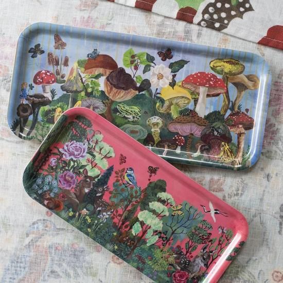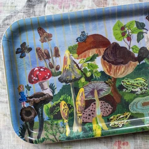 キノコが集まって、まるでキノコの山な絵柄が楽しいナタリー・レテさんのトレイ。