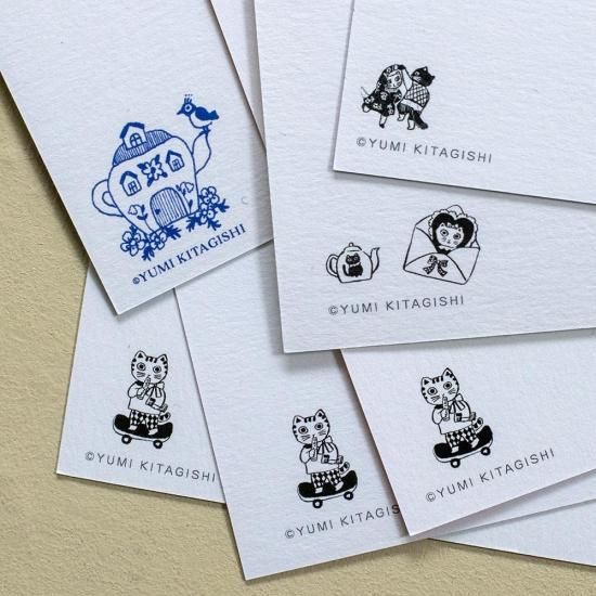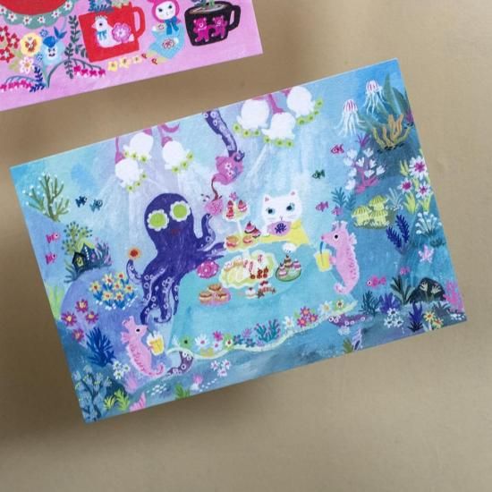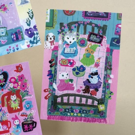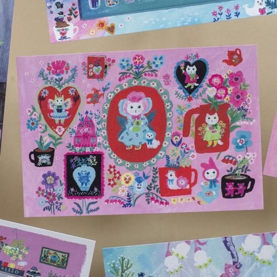 サラリとしたマットな質感のyumi kitagishiさんのイラストが素敵なポストカードから、ピンク、パープル、ライトブルー系の絵柄6枚セットでご紹介です。