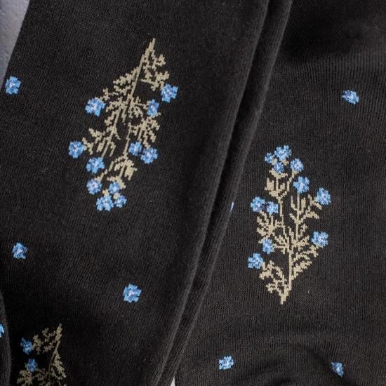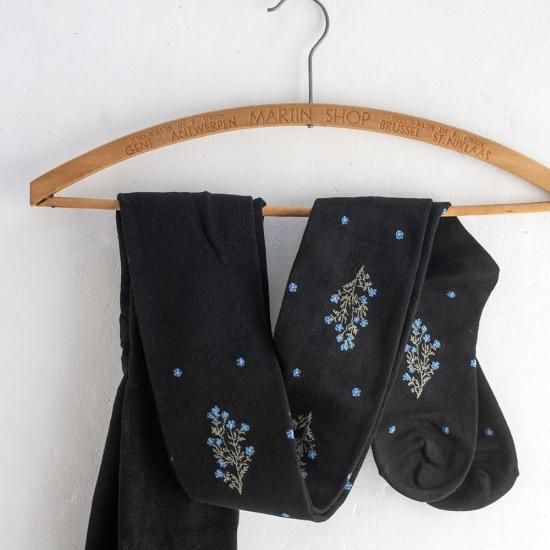 ネイビーのタイツに描かれているのは忘れな草でしょうか..清楚な印象。