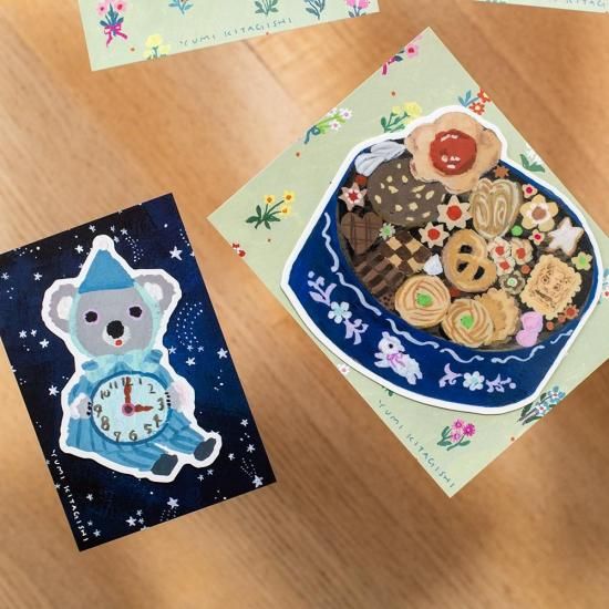 ドールハウスにクッキー缶、コアラにしろねこが描かれた5種類をセットにした、ステッカー5枚セットです。