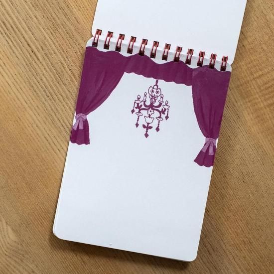 中の紙は50ページ、カーテンが描かれているので
