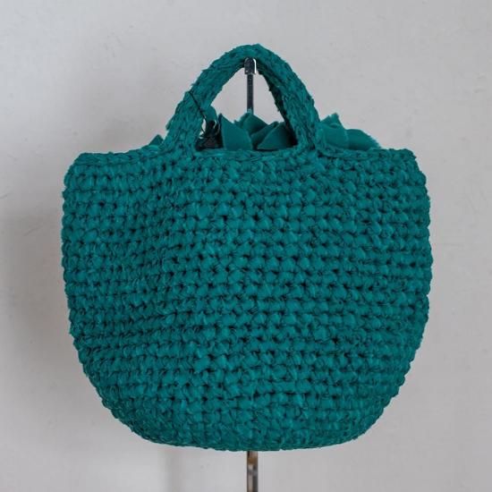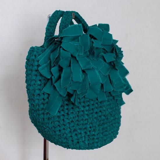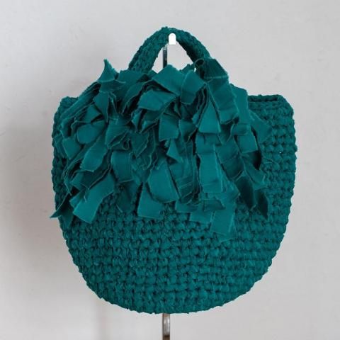 片側にたっぷりとフリンジをつけた、ころんとした可愛らしい形の裂き編みバッグ。マチ幅もあり、たっぷりと収納できるバッグは、お出かけはもちろん、デイリー用として楽しめます。