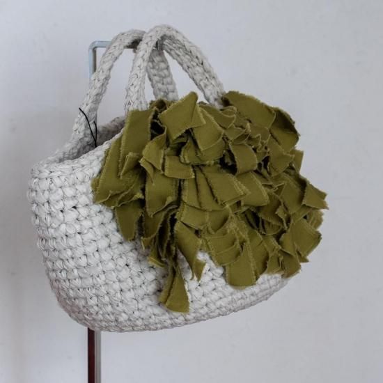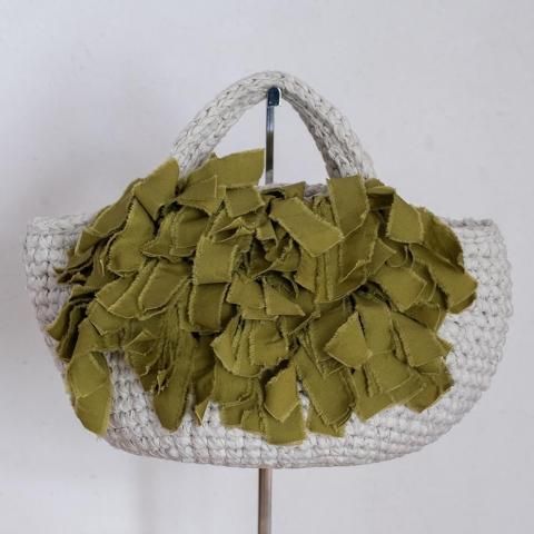 2005年より編み物作品を手掛け、どこにもないものを自分の手でつくりたいという思いから、布を裂き、糸屑を取り除き、糸へと仕立て、形へと編み上げるという「裂き編み」というユニークな手法で、 2011年より本格的に活動を始める。独創性のあるデザインを大切に、丁寧な手作業で作品をつくり上げています。
