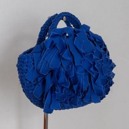 2005年より編み物作品を手掛け、どこにもないものを自分の手でつくりたいという思いから、布を裂き、糸屑を取り除き、糸へと仕立て、形へと編み上げるという「裂き編み」というユニークな手法で、 2011年より本格的に活動を始める。独創性のあるデザインを大切に、丁寧な手作業で作品をつくり上げています。