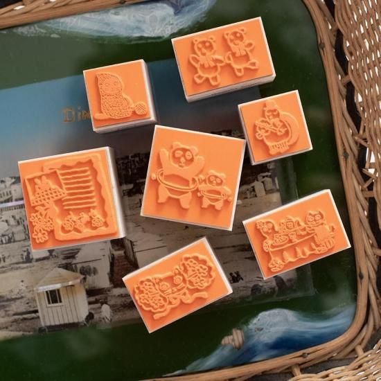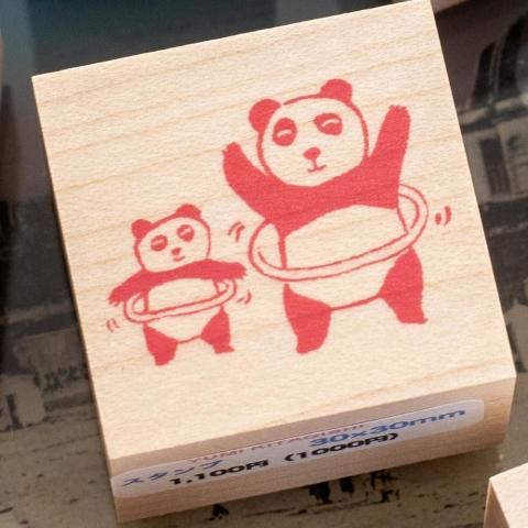 yumi kitagishiさんが描くパンダの絵がかわいい正方形のスタンプです。